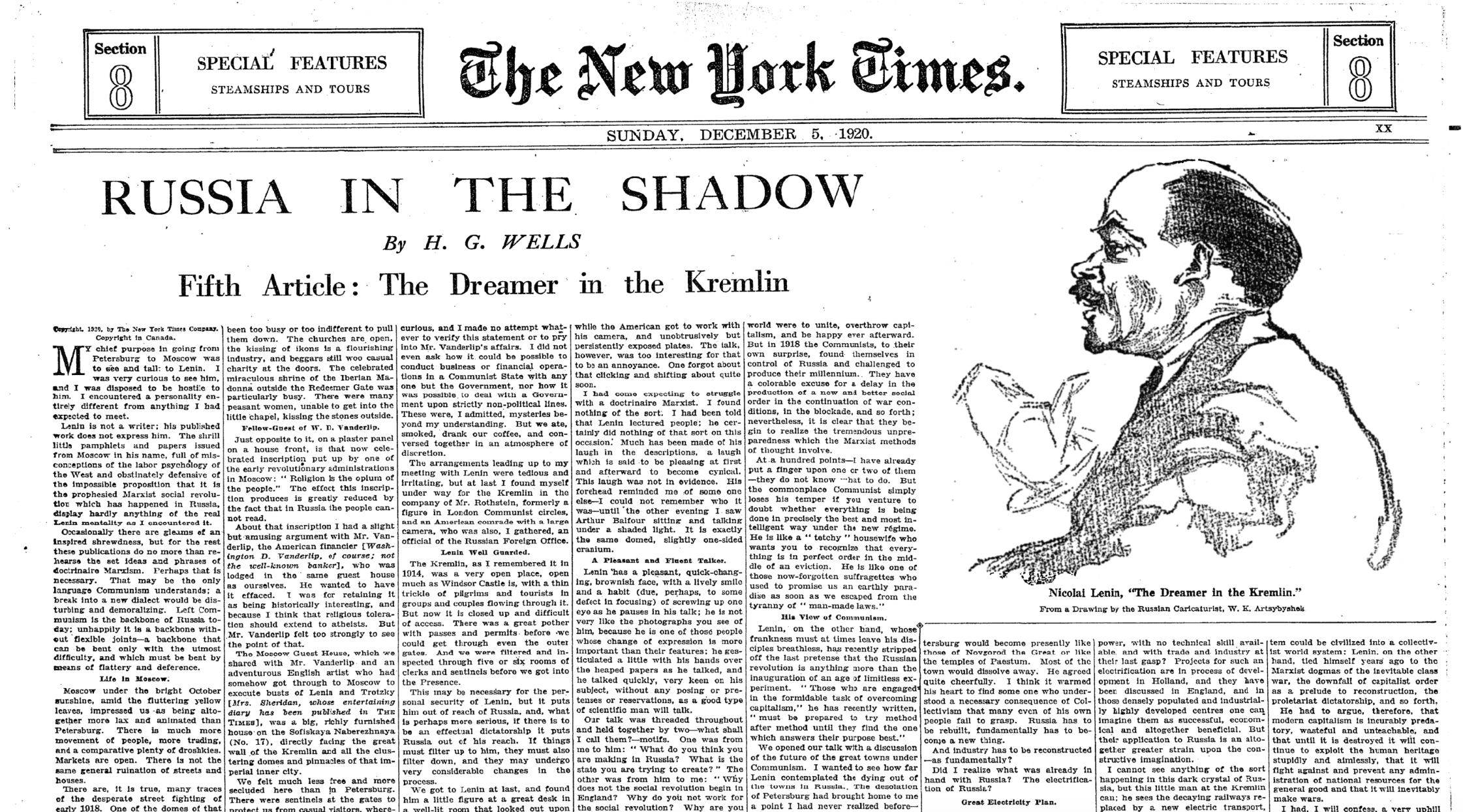 HG Wells recorded his meeting with Vladimir Lenin in a chapter of Russia In The Shadows titled The Dreamer in the Kremlin.